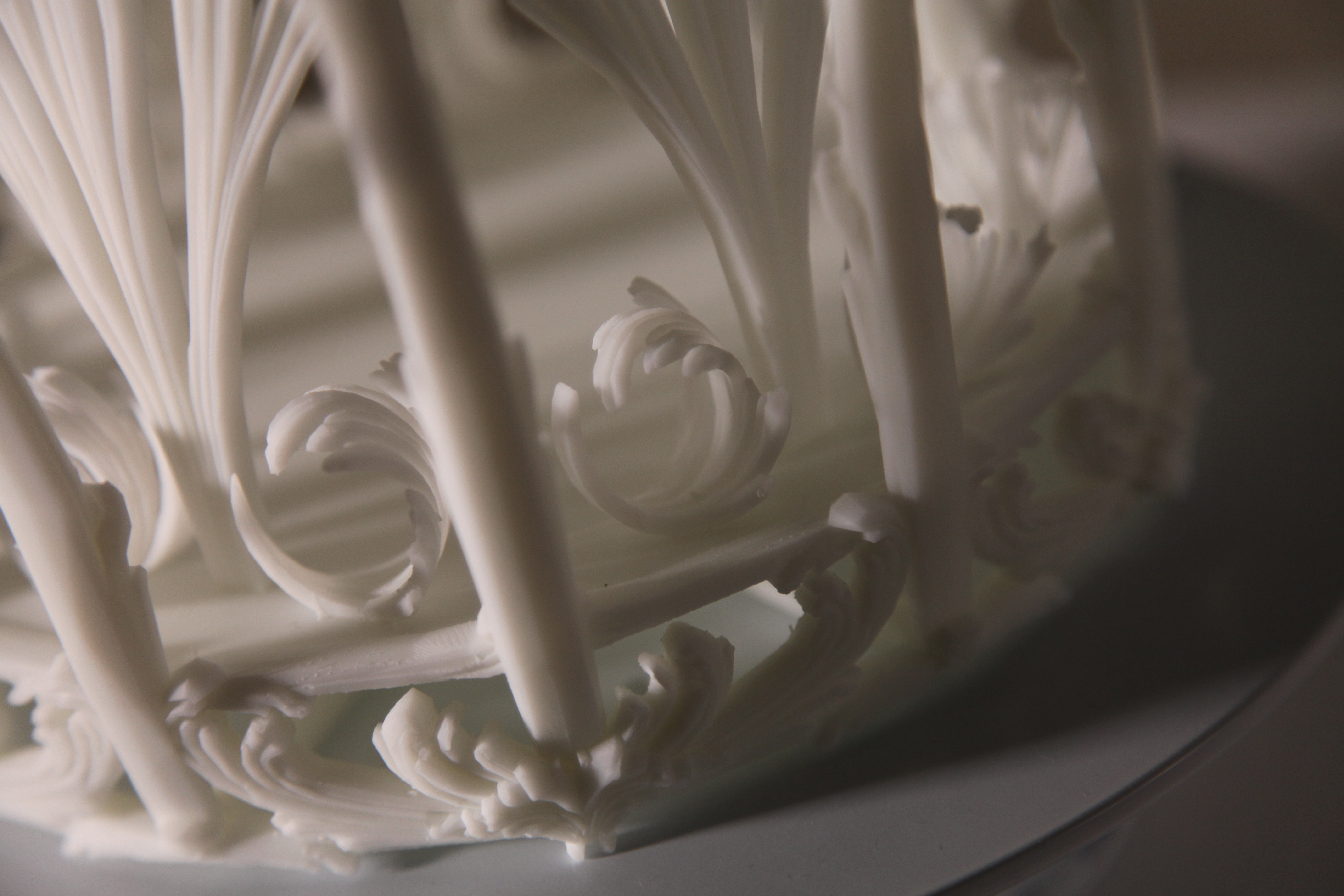 “Break Away” is inspired by the traditional Chinese running horse lantern and Western zoetrope, both of which impart the characteristics of motion to stationary objects. This project uses the same principles to explore the relationship between 3D printed artwork and animation. In order to better respond to Rococo's design theme, we extracted the original shape of the pattern from the paintings at the time and established the 3D model. The overall model is roughly divided into two parts: the outer decorative frame and the pattern of growth inside. The modified frame can also grow and sway along with the intermediate pattern at high speeds. By using cameras and lights, it is not only a static handicrafts, but also a vibrant video installation and animation.